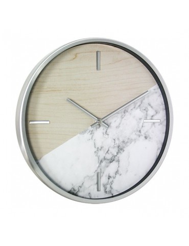 Horloge murale ronde bicolore effet bois et marbre D.30cm