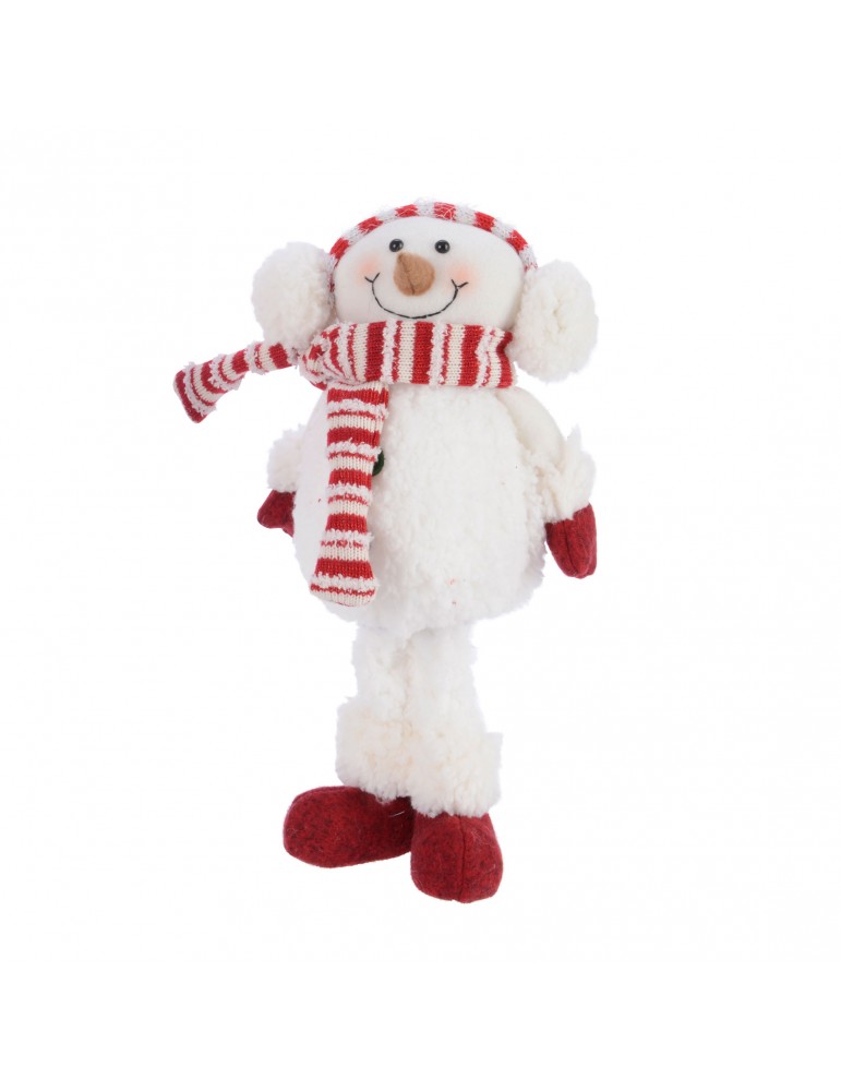 Figurine de noël à poser bonhomme de neige rouge et blanc