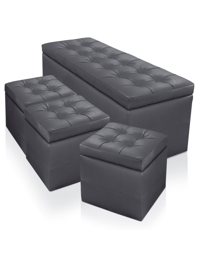 Banquette Coffre Panky XL + 3 poufs Gris