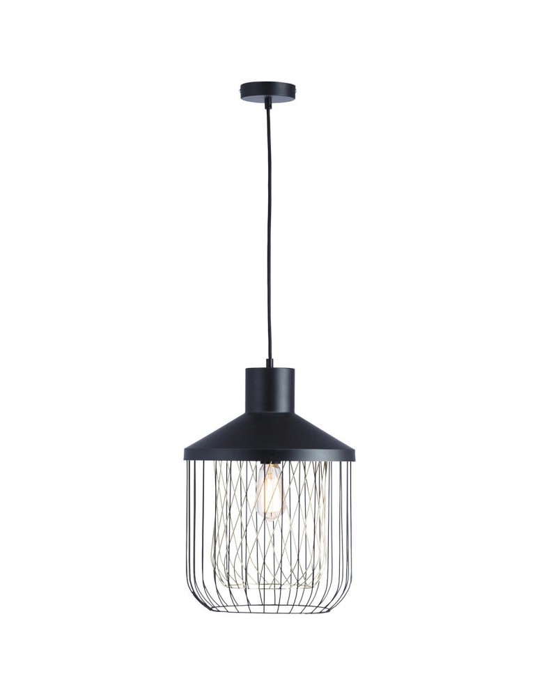 Suspension moderne et design en métal façon cage noir et doré.