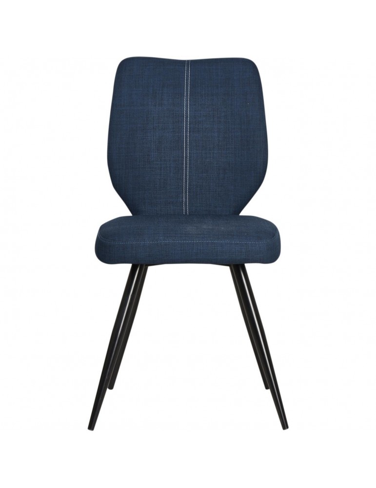 Lot de 2 chaises de salle à  manger aux inspirations scandinaves en tissu agréable bleu et pied en métal noir moderne.