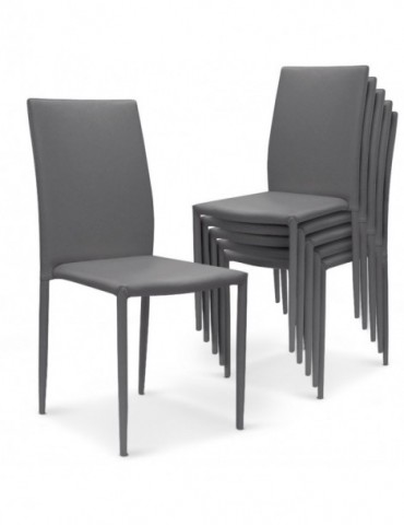 Lot de 6 chaises empilables Modan PU Gris