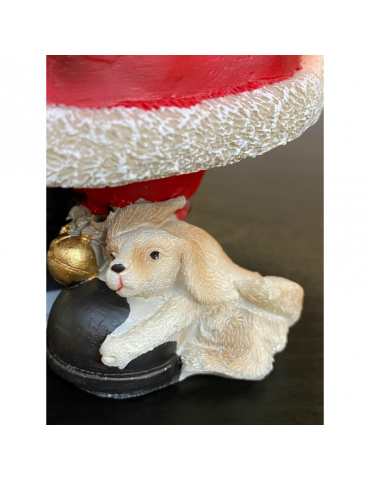 Craquez pour cette jolie décoration Père Noël en résine de 14,5cm accompagné de son petit chien, d'un ourson en peluche et d'un cor de chasse et étoffez votre collection de Noël. Parce qu'on en a jamais assez, ce petit Père Noël saura trouver sa place parmi toute votre décoration de fête de fin d'année.