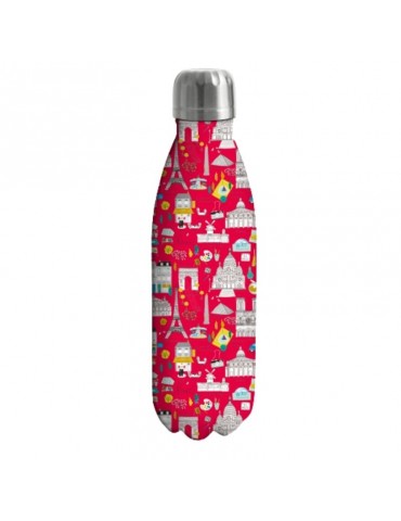 Bouteille isotherme 26 x 6,7cm, de 500 ml rouge sur le thème de Paris.