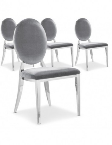 Ce Lot de 4 chaises médaillon Sofia velours Noir pieds métal brillant effet miroir trouvera sa place autour d'une table de salle à manger.