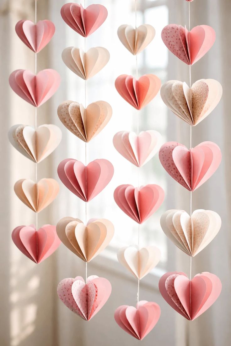 Pour commercer, réalisons de jolies guirlandes de coeurs en papier.