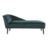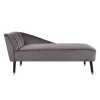 Cette méridienne au style Art déco est en velours rose poudré et les lignes sont sobres, elle s'associera aux table basse et luminaire en métal doré.